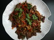 Diced beef marinated in vinegar & hot chili sauce, cooked with spices & potatoes garnished with chili & coriander
