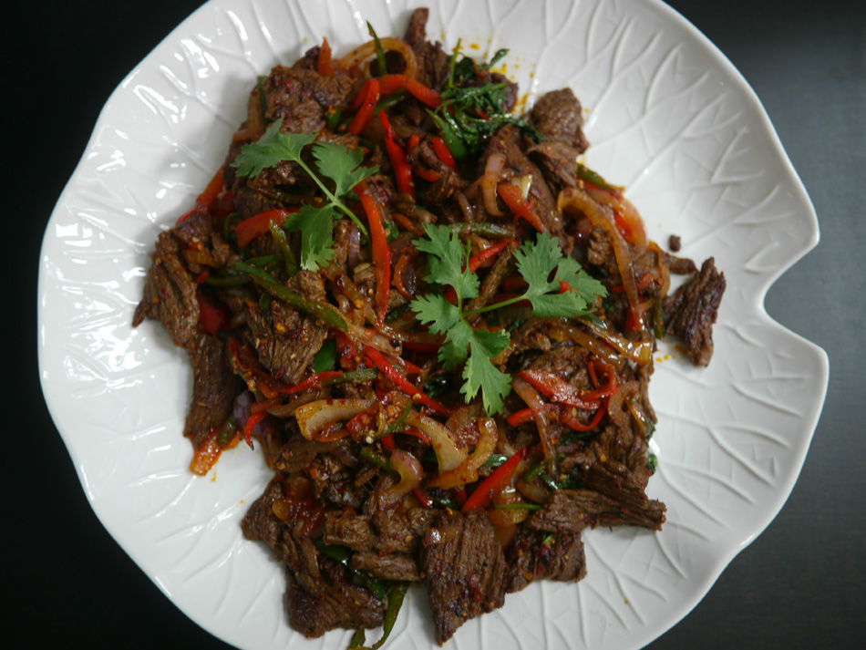 Beef cooked with coconut, diced capsicum, onion and a touch of fenugreek leaves and spices